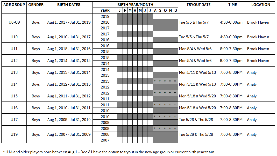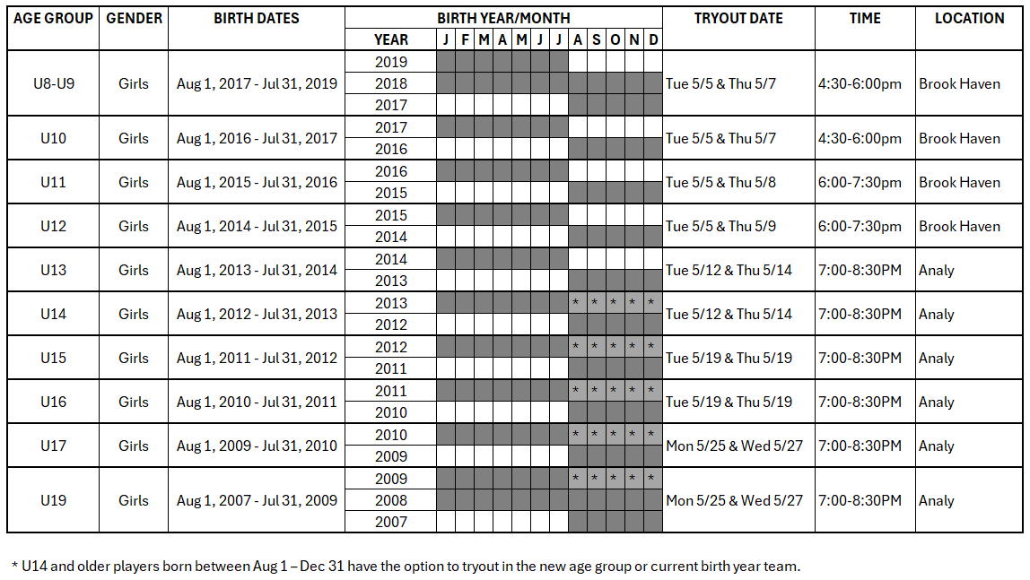 Starting with the 2026/2027 season, US Soccer/US Club Soccer is changing to new age group classifications. This means the birth-year cutoffs used in previous seasons have changed and now align more closely with school grades.